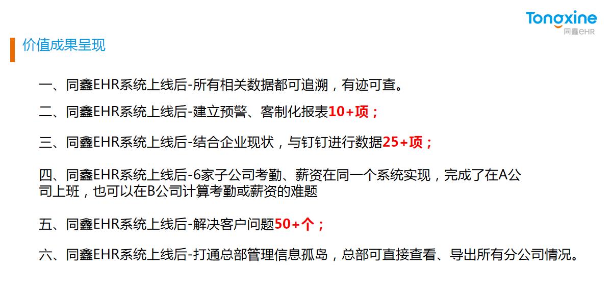 同鑫eHR系統(tǒng)上線價值: