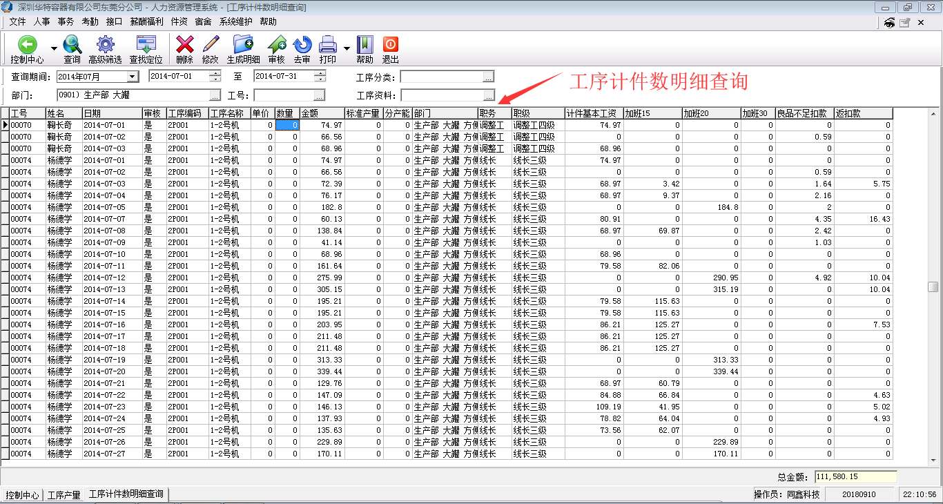 人事部專員蔡生:通過自定義查詢報表:計件工資明細查詢;計件產量查詢;計件工時查詢;計件平均查詢;計件工資匯總查詢等報表實現快速可視化查詢;